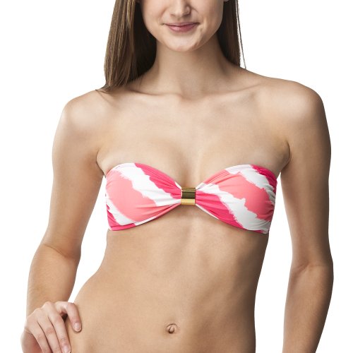 Swimsuits with a wrap front make the waist look slimmer and draw attention up towards the cleavage area;